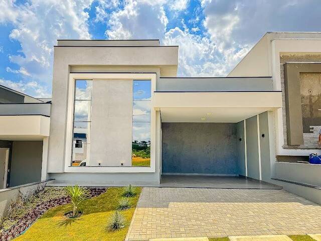 Casa térrea, nova, pronta para morar, com uma arquitetura contemporânea, pé direito alto, localizada no condômino Park Gran Reserve, na cidade de Indaiatuba.