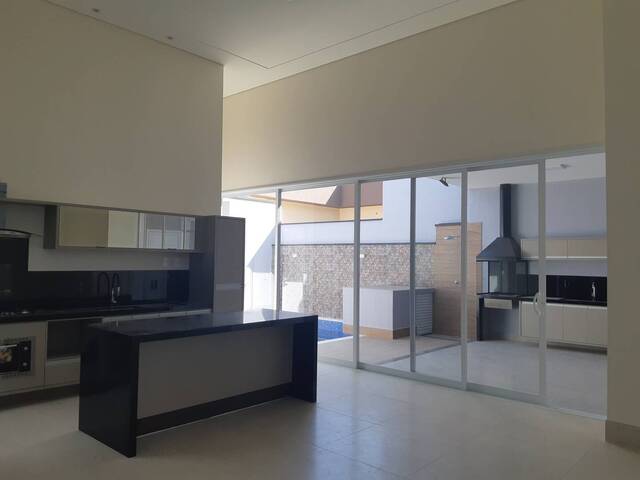Casa térrea com 3 suítes, sala de estar e jantar integrada com a cozinha planejada, lavabo, espaço gourmet com churrasqueira e piscina e garagem para 4 carros.