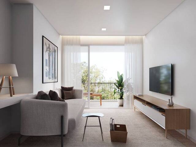 Com varanda, 2 dormitórios sendo uma suíte, living ampliado com cozinha integrada, varanda técnica e duas vagas de garagem.