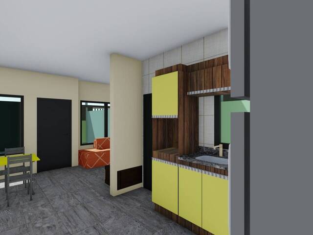 Com 2 dormitórios sendo uma suíte, sala dois ambientes, banheiro social, cozinha, área de serviço coberta e duas vagas de garagem.